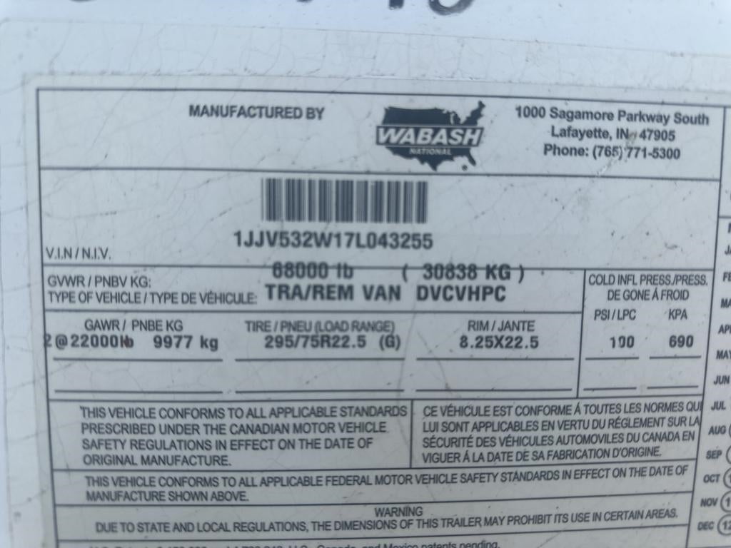 2007 WABASH VAN TRAILER 53 FT X 102 IN